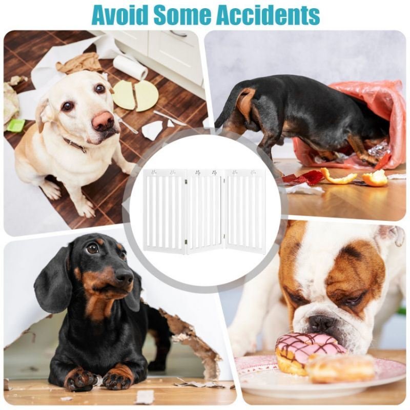 3.Multifunctional Use: With the suitable height and appropriate spacing between each slat, this pet safety fence can effectively prevent your dog from jumping over and getting through. Therefore, it is perfect for the kitchen, stairs, doorway and other places to keep your puppy safe.