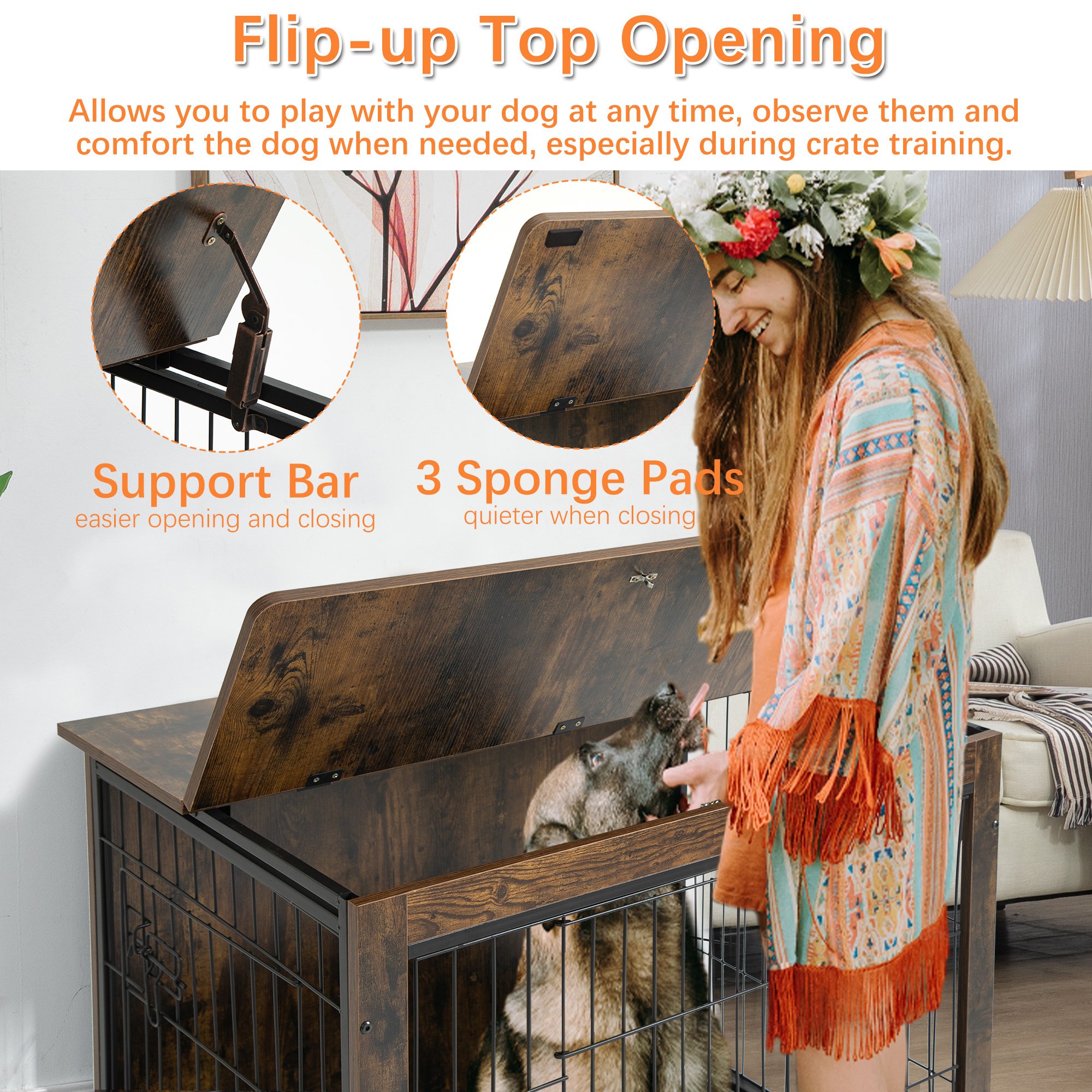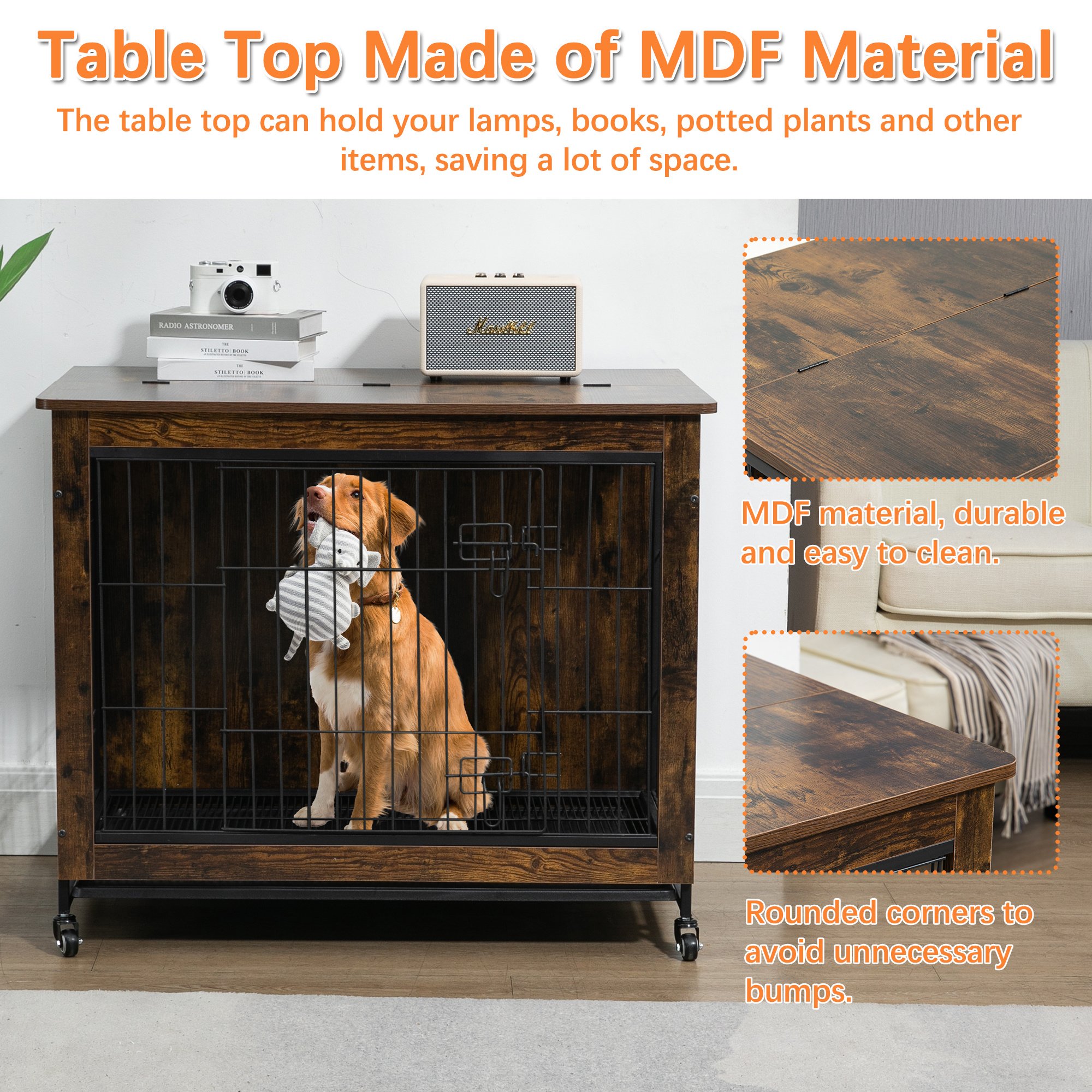 5.[Multi-Functional] This pet furniture can be used as pet crate, side table, end table or night stand. The wide top provides enough place to put some decorations such as small/medium plant, magazines, family picture frames and night lamps and so on.