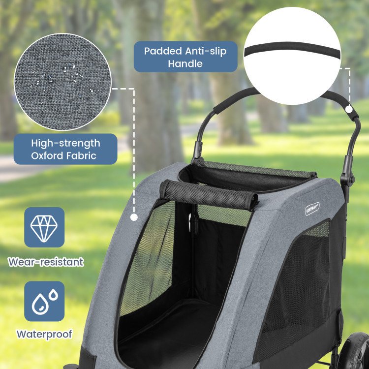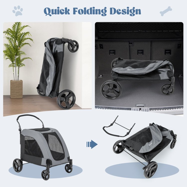 4 Wheels Extra Large Dog Stroller Foldable Pet Stroller with Dual Entry