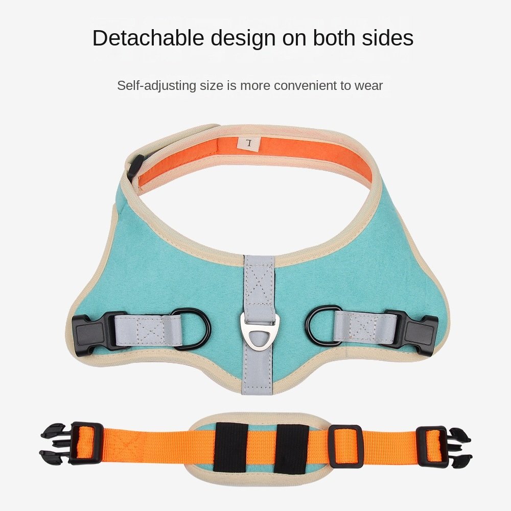 dog Harnesses and dog leash set; Suede Pet Chest Strap Saddle Vest Style Dog Chest Back Reflective Dog Strap Dog Rope Wholesale