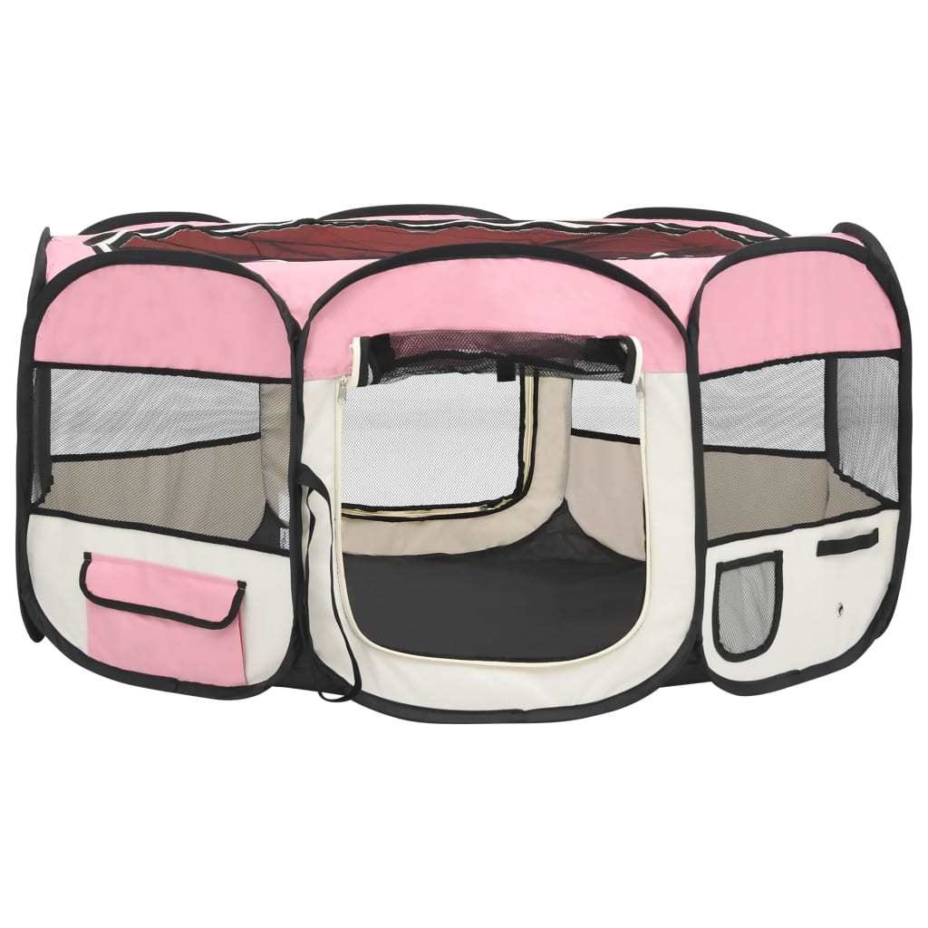 Foldable Dog Playpen with Carrying Bag Pink 57.1"x57.1"x24"
