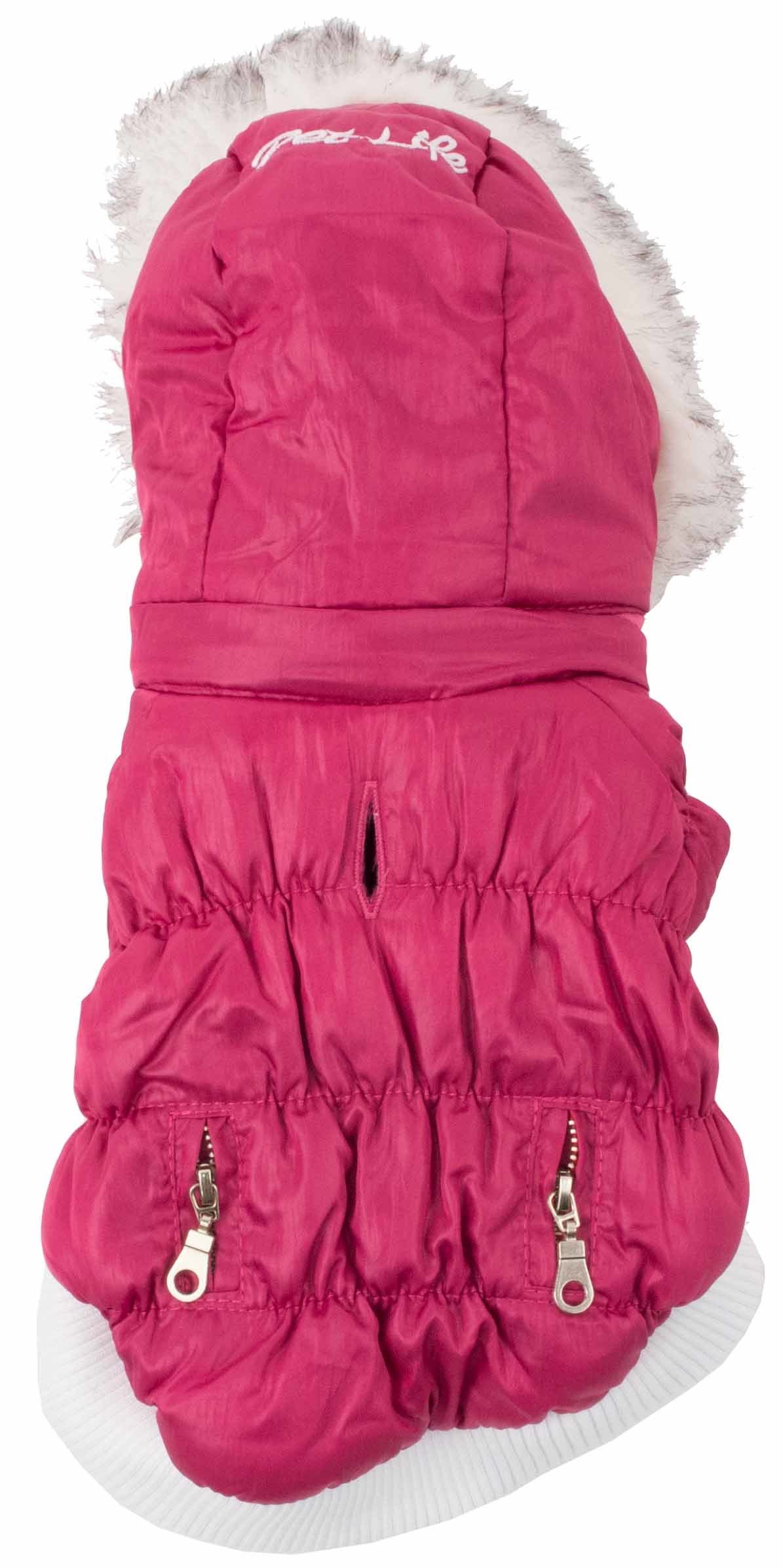 The Pet Life Metallic Parka Dog Coat contains Thinsulate thermal heat retention technology as an inner shell specially inserted between the fabric. This pet coat features matching tone-on-tone inner fleece fabrics, a faux fur removable zip-off hood, a leash slit, and belly-velcro closures for easier on and off access. This coat will keep your pet warmer during those harsher cold weather condition. Available in multiple sizes and colors.