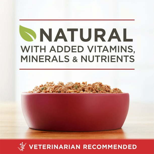 Purina ONE Natural Beef & Brown Rice Ground Wet Dog Food, The real beef in this classic ground formula delivers a tempting taste and texture combination he can't resist. This soft dog food formula contains 0 percent fillers and no poultry by products, which means that every high quality ingredient in the recipe has a purpose. With high protein and vitamins for dogs in every serving, these dog food cans help support your dog's strong muscles and healthy joints so he can maintain his active lifestyle.