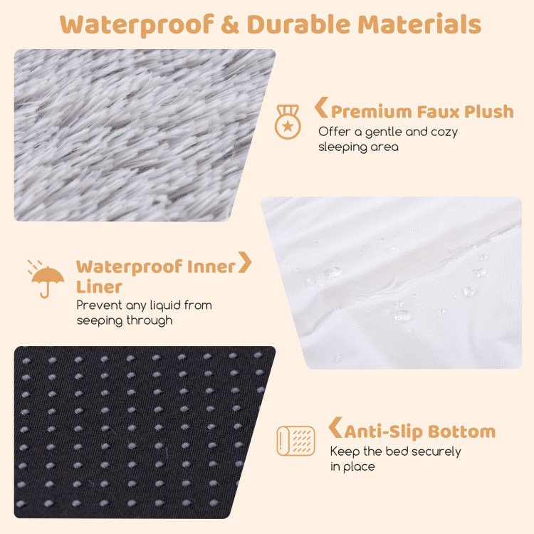 3.Waterproof and Durable Materials: The orthopedic dog bed is equipped with a premium faux plush cover, offering a gentle and cozy sleeping area, while the interior boasts a waterproof inner liner, which could prevent any liquid from seeping through. Other than that, it features anti-slip bottom to keep the bed securely in place.