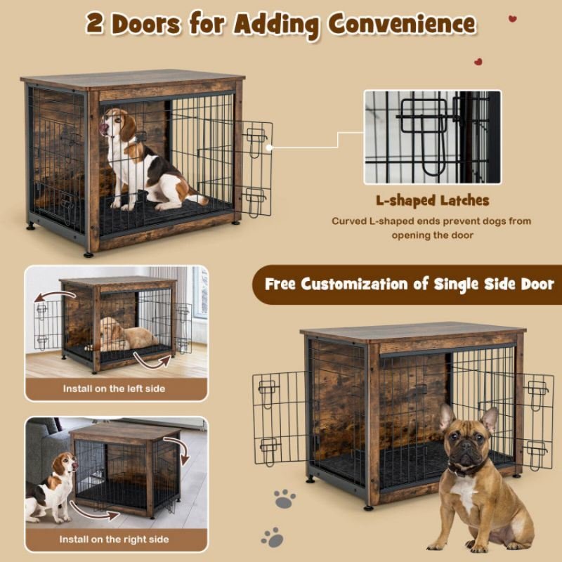 1.More than A Dog Crate: Designed with a unique 27" x 18.5" wooden table top, this dog crate can hold your regular items or decorations for the living room or bedroom and is suitable for use as a side table or nightstand. In addition, the rustic wood grain and minimalist design make this dog crate easily blend into any furniture style as a stylish furniture piece.